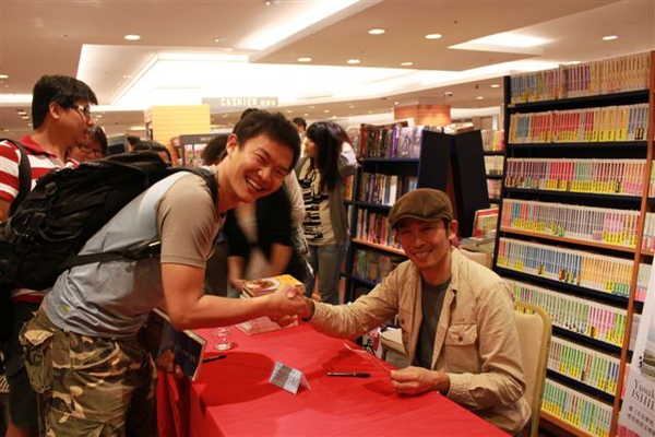 幫我簽名時 我送他了一張台灣古地圖 寫上了"心中的勇士"幾個字給石田先生